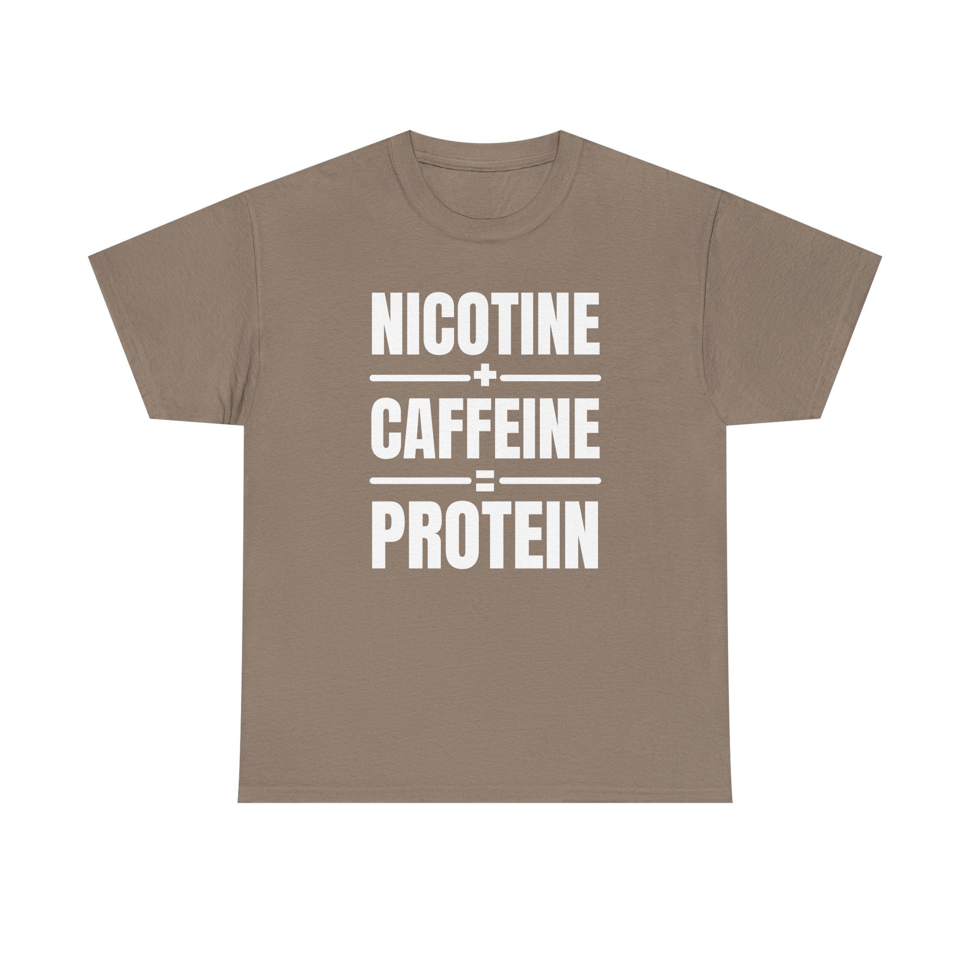 Nicotine + Caffeine = Protein Unisex Heavy Cotton Tee