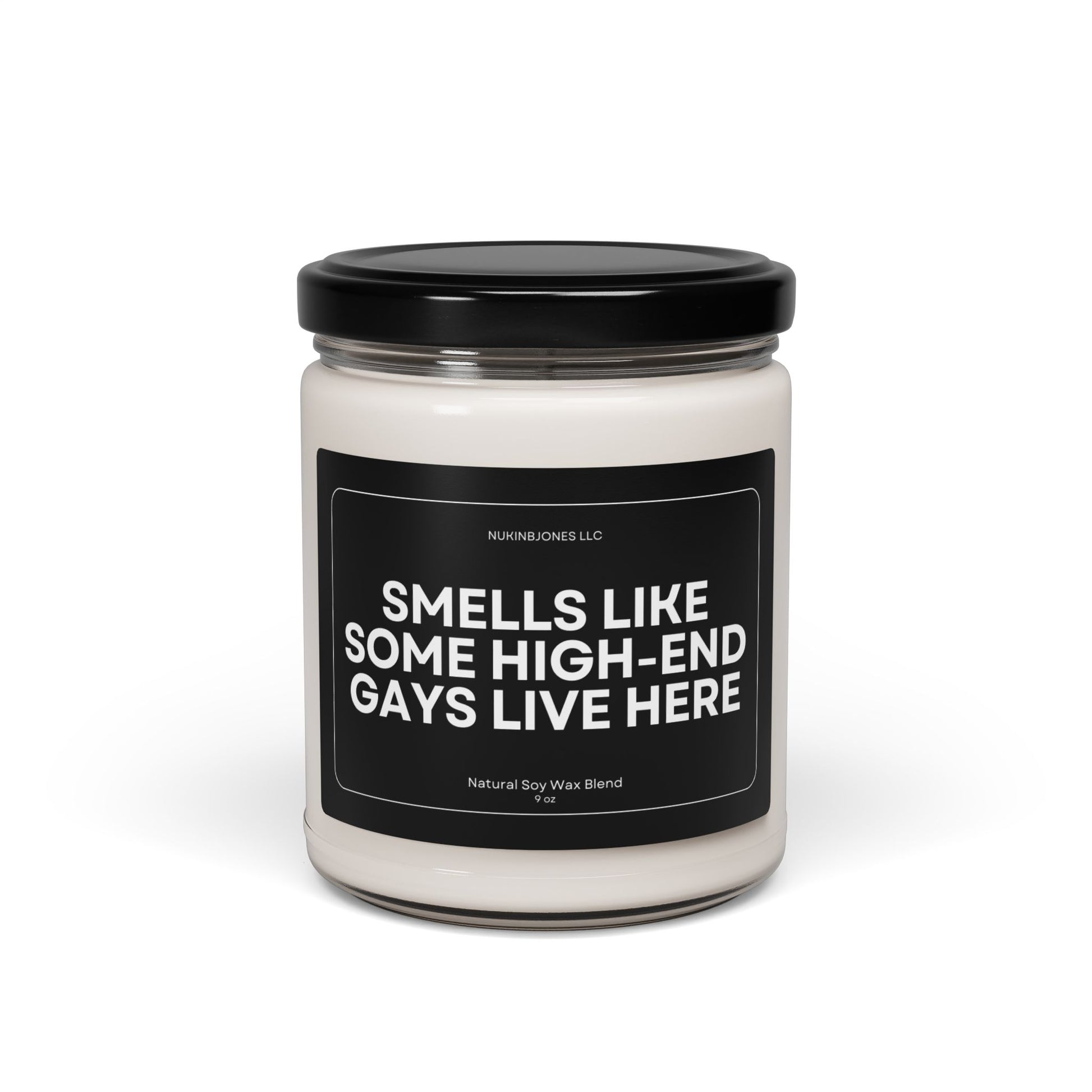 Smells Like Some High End Gays Live Here Scented Soy Candle - 9oz - Eco Friendly - Non Toxic - Reusable Glass Vessel